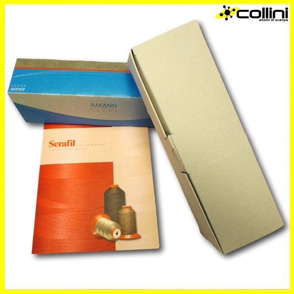 La produzione delle nuove scatole di cartone riguarda principalmente il filo poliestere Serafil per cucire a macchina e il filo poliestere ricoperto Saba per cuciture e per ricami.