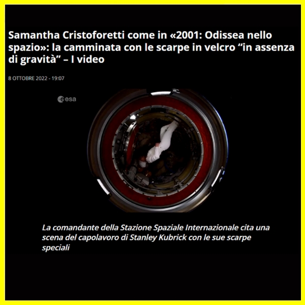 Tra le diverse imprese realizzate durante la Missione Minerva, Samantha ha voluto anche ricreare una famosa scena del celebre film “2001: Odissea nello spazio” di Stanley Kubrik e verificare personalmente se si poteva camminare nello spazio indossando scarpe in VELCRO® Brand.