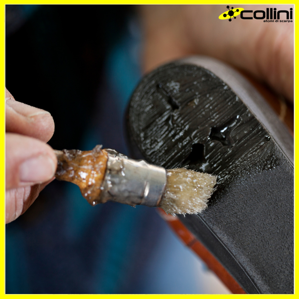 Parlando sempre del processo d’incollaggio di parti della scarpa non possiamo fare a meno di evidenziare il protagonista assoluto di questa fase: il mastice, la colla dei calzolai per eccellenza!