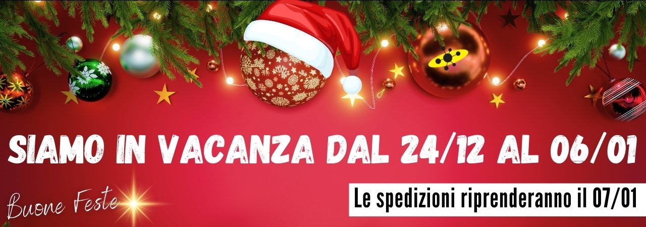 Comunichiamo a tutti i nostri clienti, fornitori e partner che tutte le attività sono sospese a partire da mercoledì 24/12/2025 fino a martedì 06/01/2026. Anche il servizio di spedizioni non sarà attivo e riprenderà mercoledì 7 gennaio 2026.